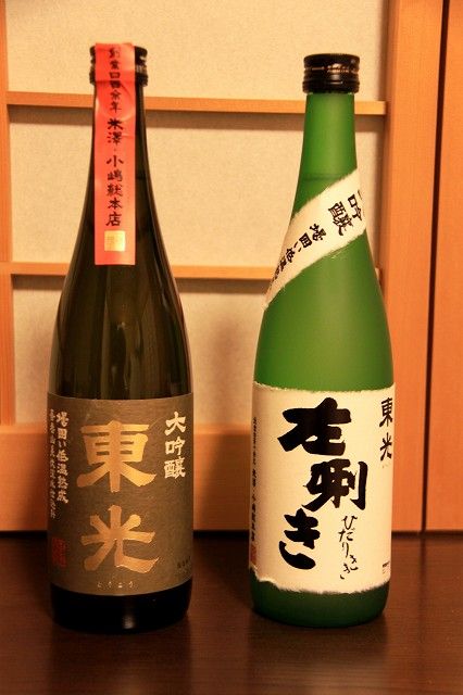 2011年07月26日 左唎き(ひだりきき) 米沢にある「東光の酒蔵」 とっても充実してます。 せっかくなので、東光大吟醸と大吟醸左唎き(ひだりきき)をゲット。 左唎き(ひだりきき)の名前の由来は、こう書かれています。 「昔、木彫家や大工さんが右手に槌を、左手に鑿(のみ)を持って仕事をしたことから、左の手を「ノミの手」つまり「呑みの手」となり、酒飲みのことを「左唎き(ひだりきき)」というようになった・・・(つづく)」 ほう、ひとつ物知りになりましたなー。