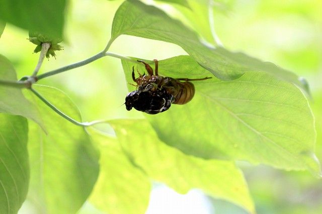 2011年07月24日 蝉の羽化 おお・・・、蝉の羽化 と思ったら、これ以上動きませんなー。 昨日は大暑なのに、たまたま気温が低かった・・・。 それで羽化に失敗してしまったんでしょうか? せっかく7年もの間地下で準備してきたのに・・・。 んー、残念!!