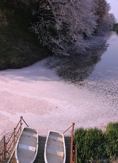 2014年04月25日 桜散る 桜も散り始めましたなー。 霞城のお堀も散った桜の花びらでいっぱいです。 散り始めると一気ですからねー。 もう数日なんでしょうなー。 このいわゆる「いさぎよさ」、 言い方を変えれば「あっけなさ」、 これやはり日本人の気質、美意識と関係してますよねー。 アメリカのヒーローは逆にタフさが売り物ですものねー。