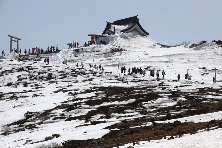 2014年04月27日 蔵王エコーライン 今日は天気もいいし、 エコーライン開通したということなので、 何年かぶりで行ってみました。 なかなかチャンスないんですよねー。 おお・・・、聖地巡礼のようですなー。 お釜はまだ凍ってます。 たまに来てみるもんですなー。 絶景です。