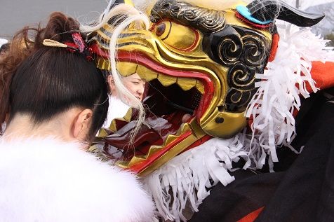 2015年01月13日 成人式 山形市は昨日が成人式。 イヤイヤイヤ、女性は華やかですなー。 これほど華やかな場面って、そうそうないですよねー。 気合入ってます。 御神楽獅子から頭かじってもらって、無病息災。 ちょっと恥ずかしそうですなー。
