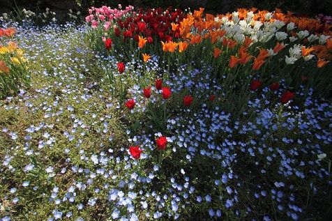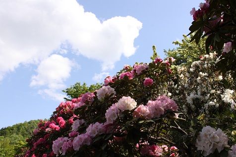 2015年05月17日 泉ボタニカルガーデン 春ですなー! 何はなくとも、心ウキウキですなー。 先日、泉ボタニカルガーデンへ行ってみました。 これがまた、広くて充実してますなー。 シャクナゲが山の斜面一杯に満開っス。 色とりどり、百花繚乱。 青空にまた映えますなー。 チューリップや、・・・えっとこの青い花は何でしたっけかなー。 まあとにかく、いろんな花が植えられているようです。 かえりはちょっと道に迷いそうです。