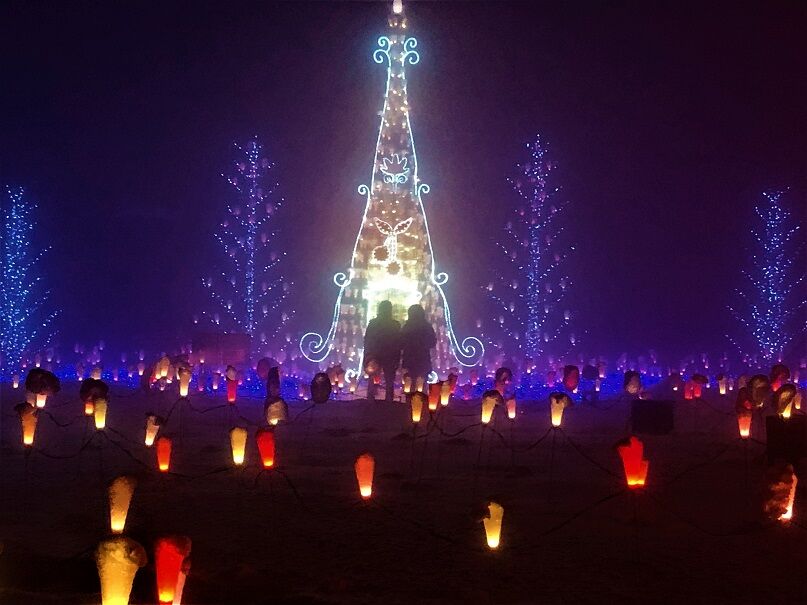2022年01月26日 音と光のファンタジア 寒河江の最上川ふるさと総合公園で開催されている「音と光のファンタジア」おお、、、なかなかいいですなー。ゆーチェリーに行った時でした。とっても寒かったけど、あたり一面靄っていて幻想的でした。色が変化します。観る人いないのがモッタイナイ。でも寒い。青空に飛行機雲。ハハ、、、