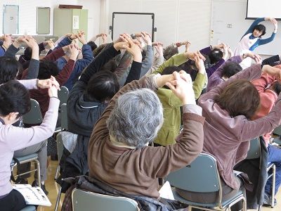 2015年03月06日 お口若返り講座 先日は久々の「お口若返り講座」担当しました。 今回のテーマは「ドライマウス」。 たくさんの方に来ていただきました。 天気が良かったからですかねー。 健口体操はいつものやつ。 衛生士会のお姉さまもベテランですなー。 今回は早口言葉でシメ。 アンチエイジングはお口の体操からですなー。