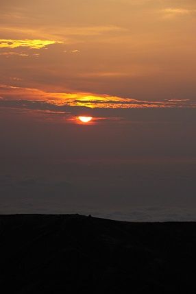 2018年09月23日 蔵王、印象日の出 実は今年は・・・お釜の日の出を見に・・・ 朝の3時半頃起きて、お釜まで行ってみました。 今年は快晴の日が多かったので良かったのですが、 おお・・・風が強くて侮れませんなー。寒い! カメラの技術が未熟で、なかなかうまく撮れませんが、 この次はうまく撮るぞー‼ (露出の調整ね・・・それと構図と・・・ハア・・・) でも、早起きしてきた甲斐がありました。 早起きは三文の得です、やっぱり! ちょっと1日眠かったですけどねー。